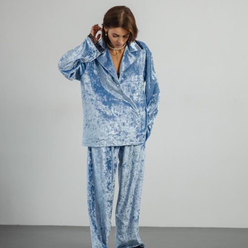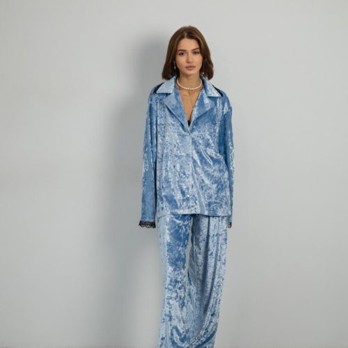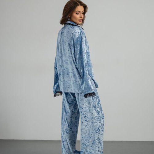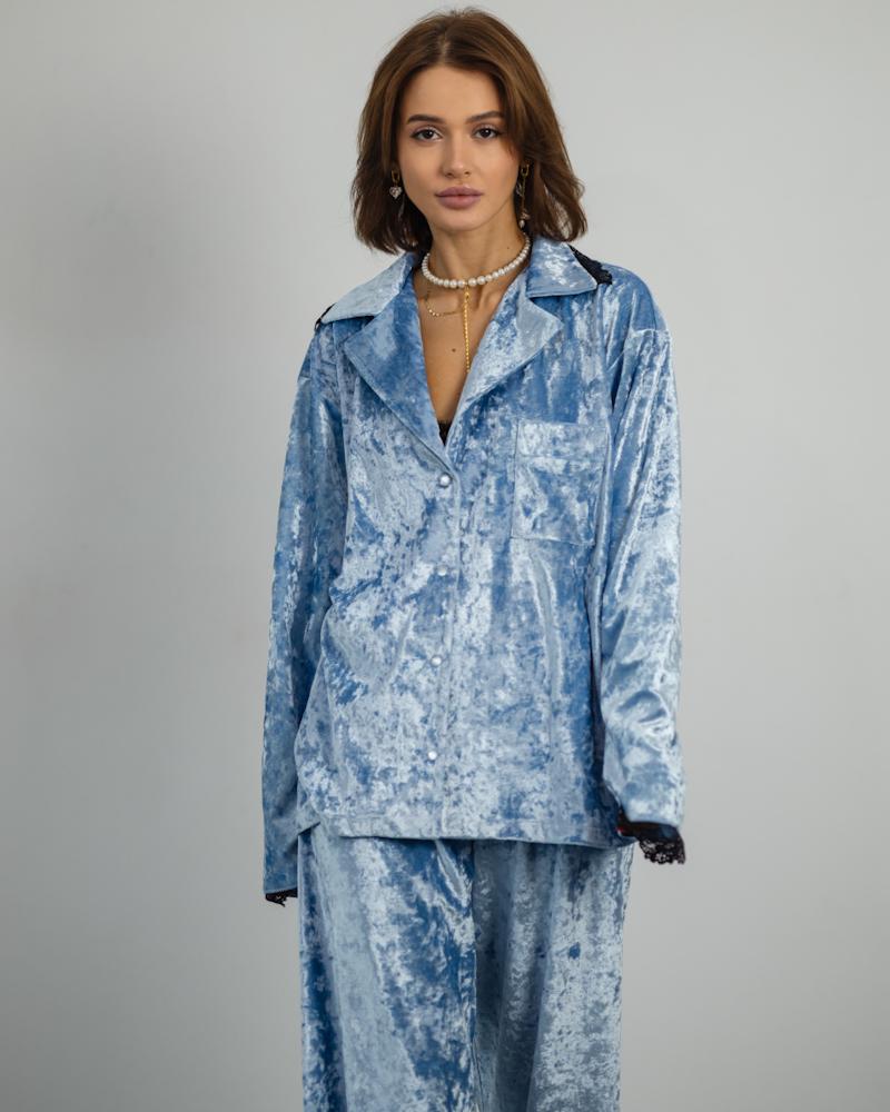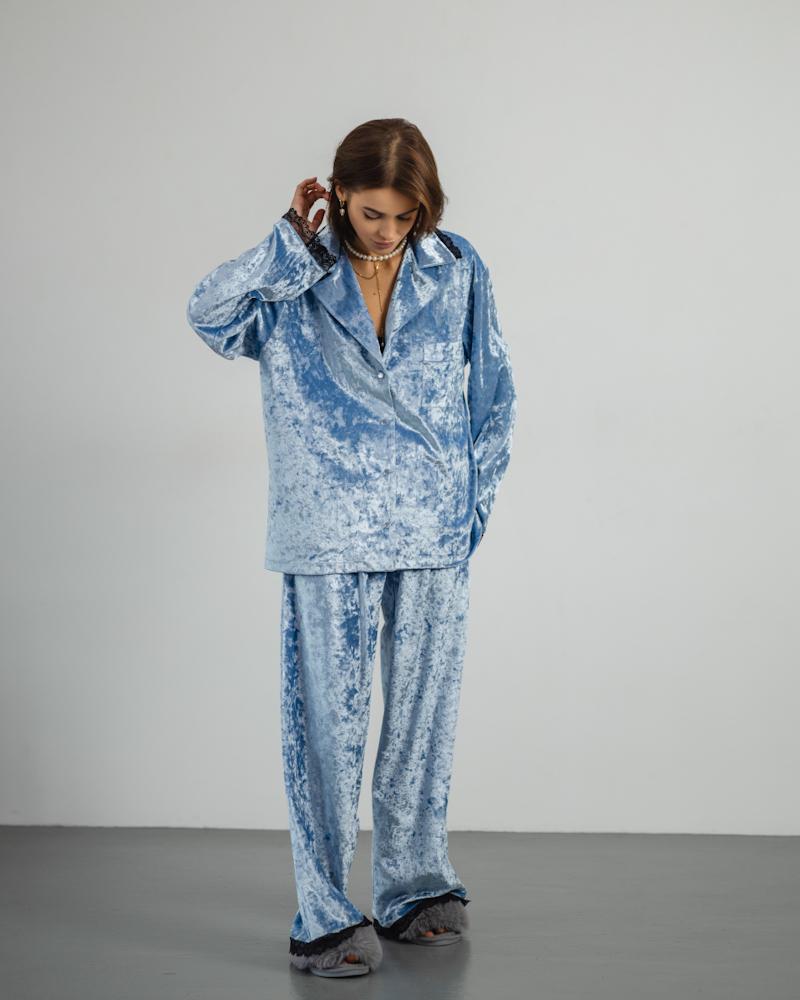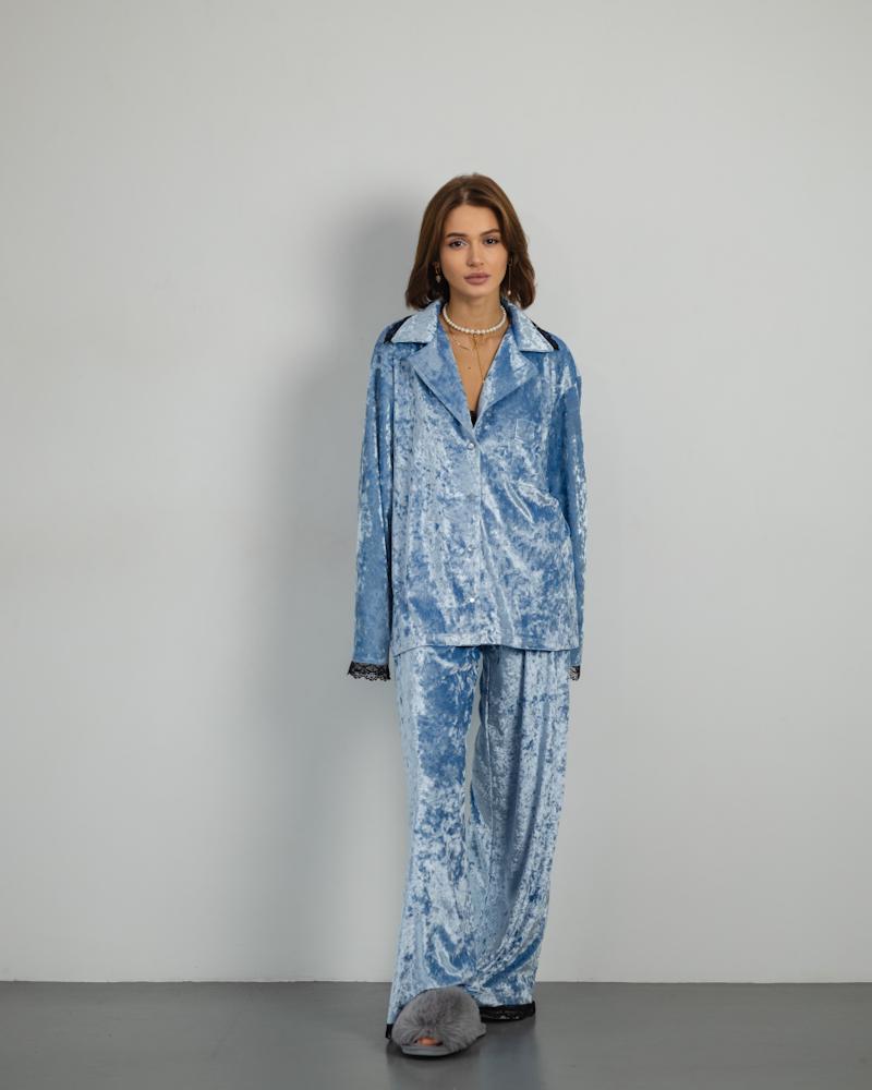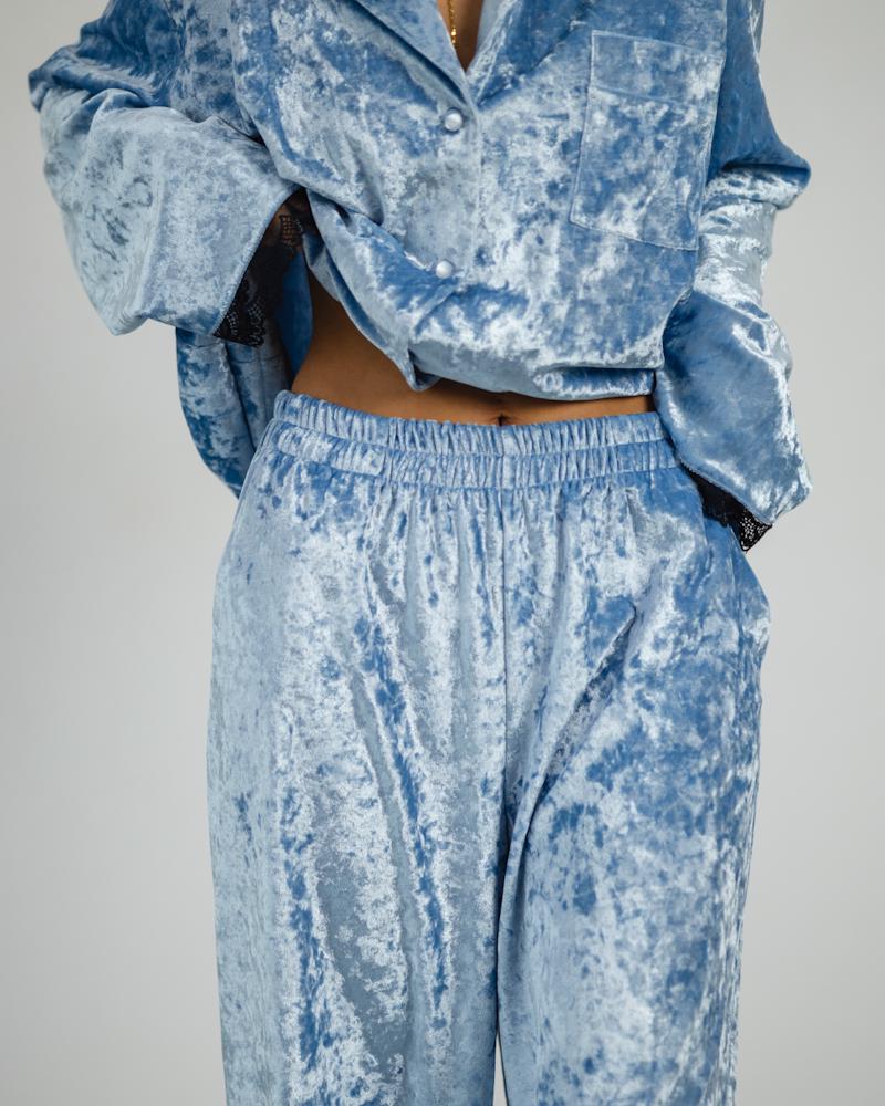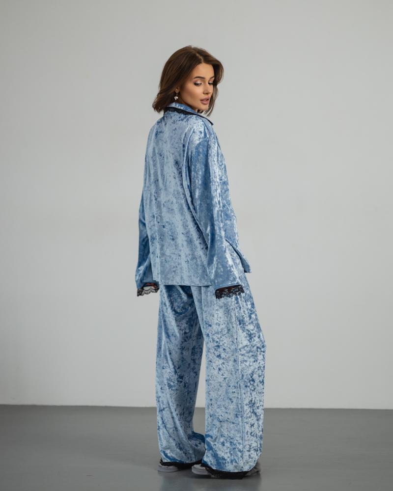 Pajamas Marble Velor + Lace Blue